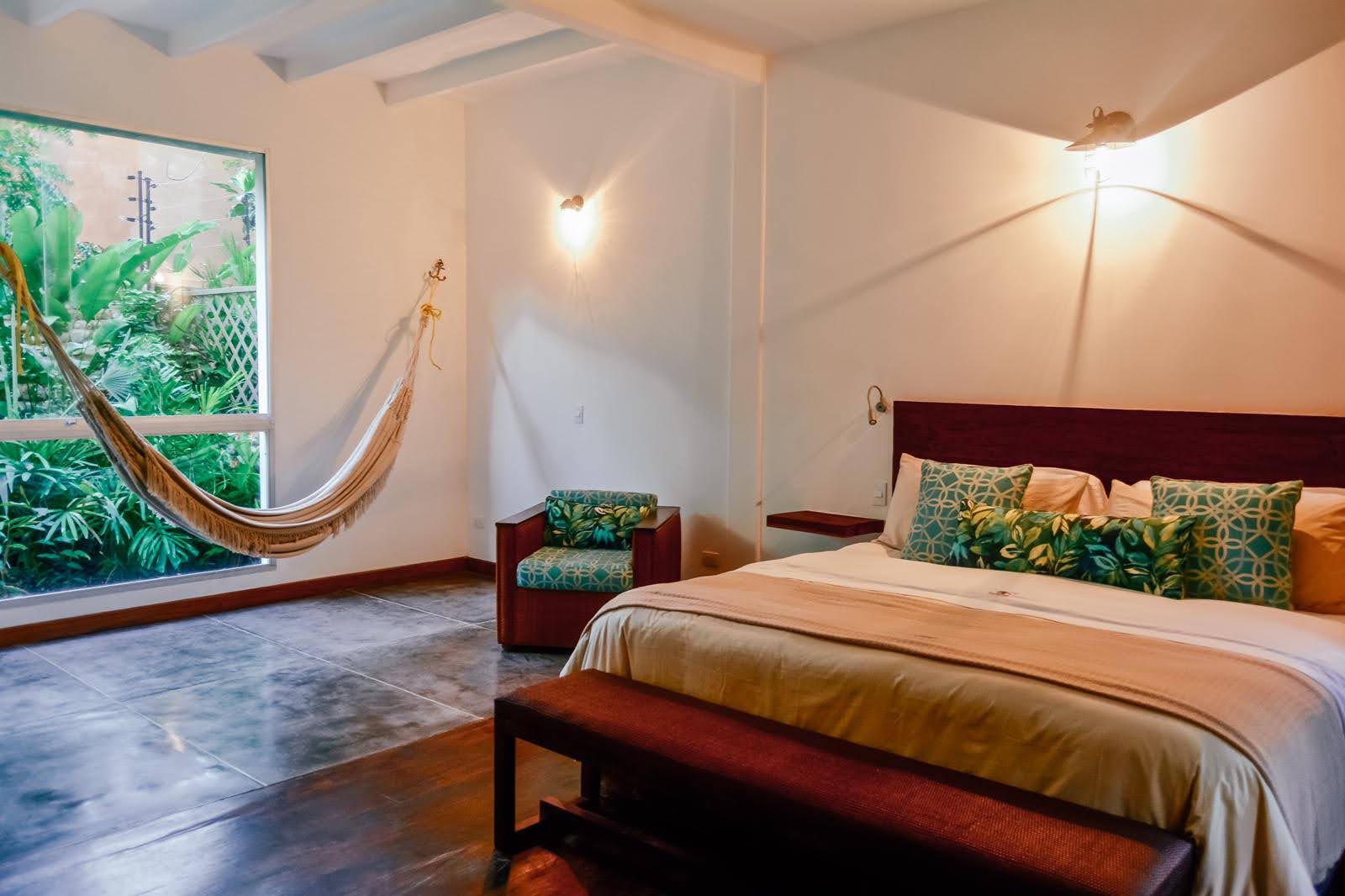 A través de su ventanal, la naturaleza se presenta como un cuadro sereno, y el balcón privado, también con una hamaca que te acuna, disolviendo el tiempo y meciéndose hacia una calma absoluta y una íntima conexión con la naturaleza circundante. Un rincón donde la comodidad y la belleza natural se entrelazan. Ideal para familias o grupos que buscan confort y funcionalidad.