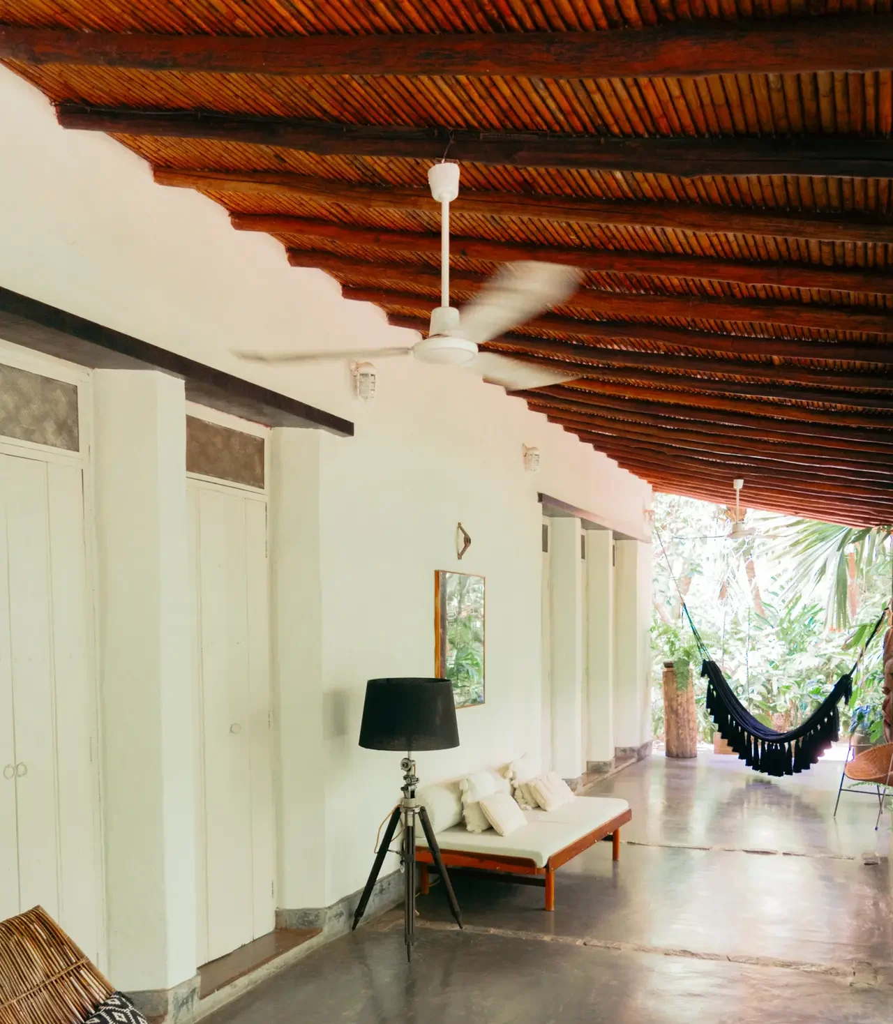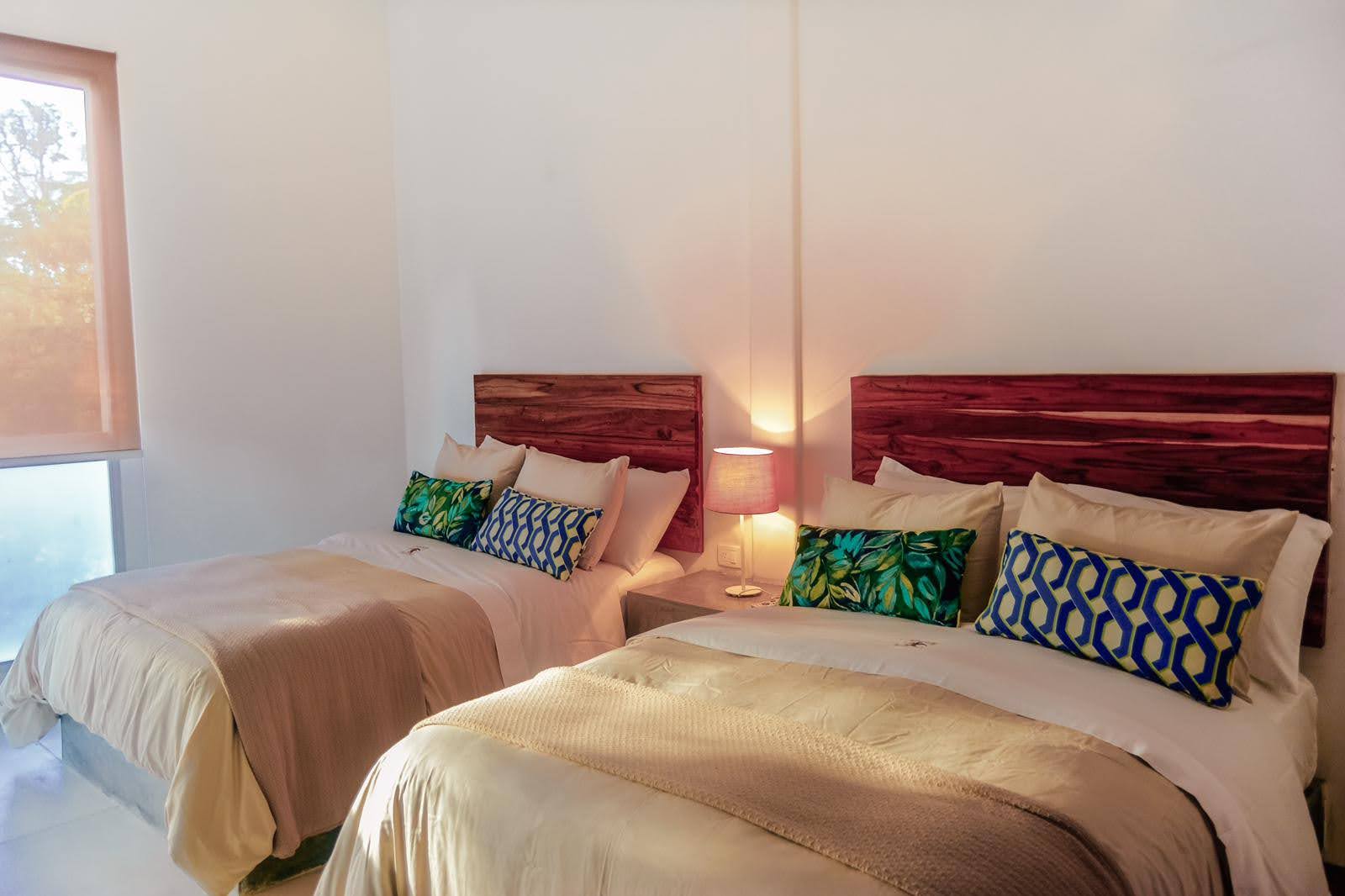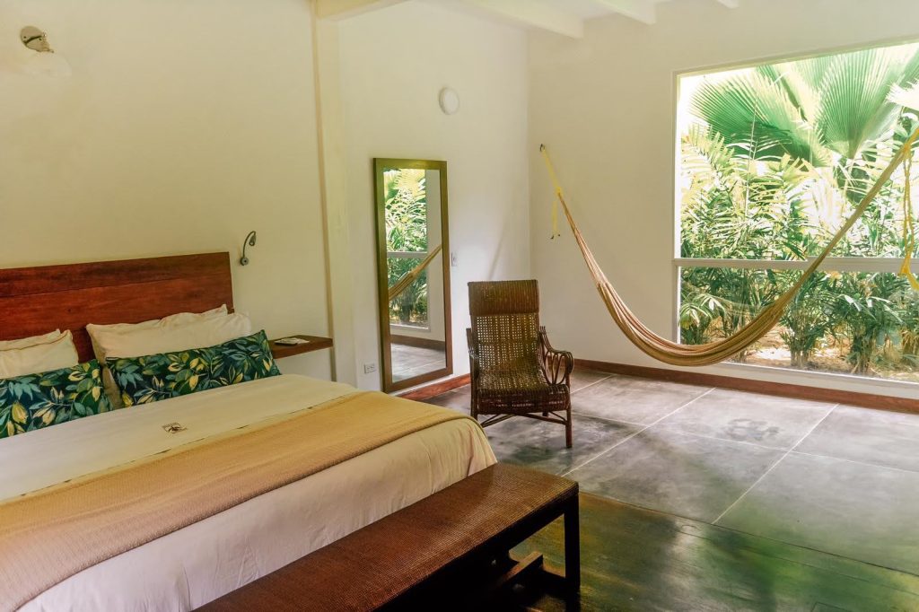 A través de su ventanal, la naturaleza se presenta como un cuadro sereno, y el balcón privado, también con una hamaca que te acuna, disolviendo el tiempo y meciéndose hacia una calma absoluta y una íntima conexión con la naturaleza circundante. Un rincón donde la comodidad y la belleza natural se entrelazan. Ideal para familias o grupos que buscan confort y funcionalidad.