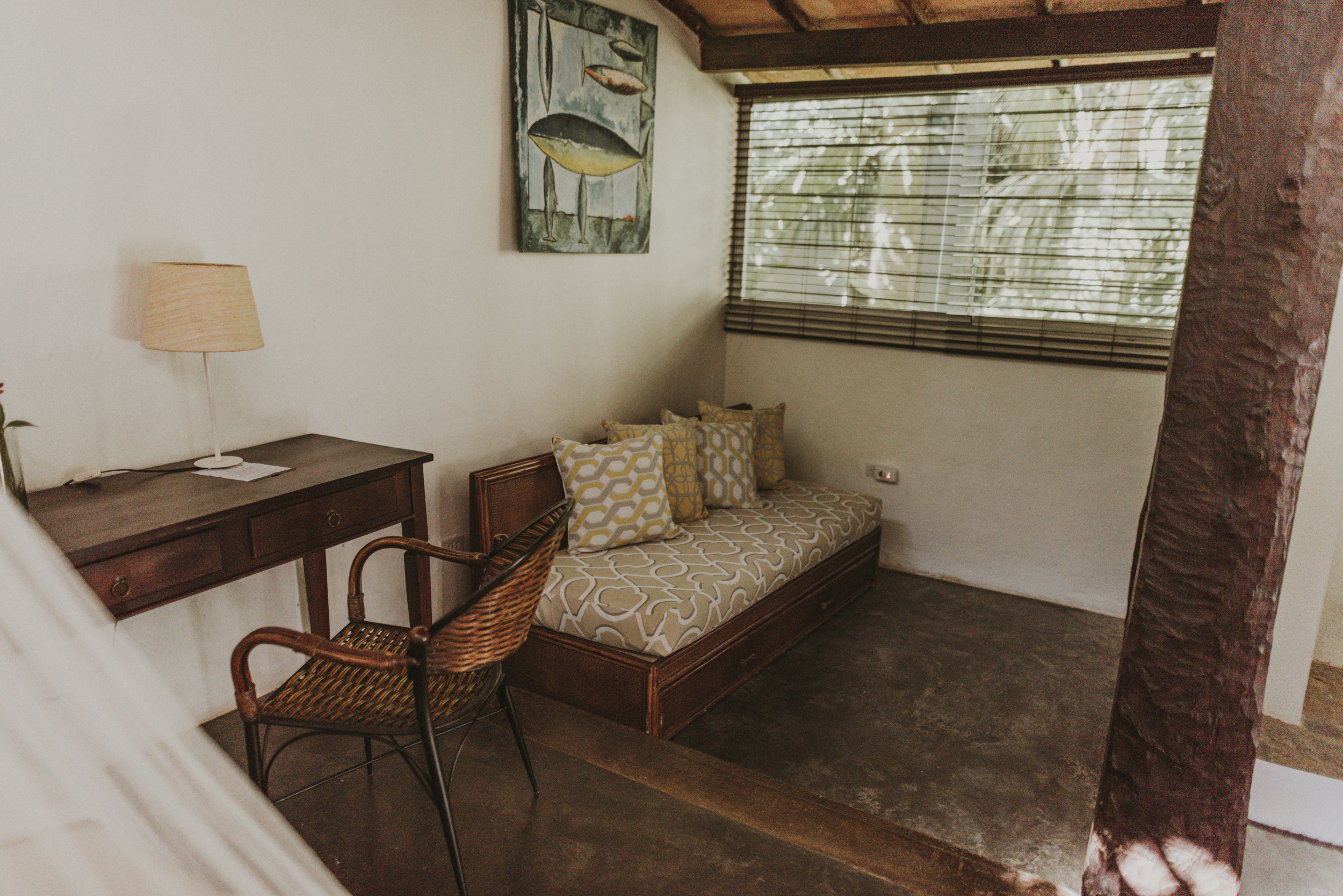 La segunda suite de la Casa Principal lo espera con una atmósfera colonial exquisitamente recreada, donde el confort moderno se fusiona con un toque exótico inspirado en la naturaleza circundante. Tal como en la suite #1, despierte con la melodía de los pájaros y el suave murmullo del río, una serenata natural que complementa las comodidades cuidadosamente dispuestas para su bienestar.