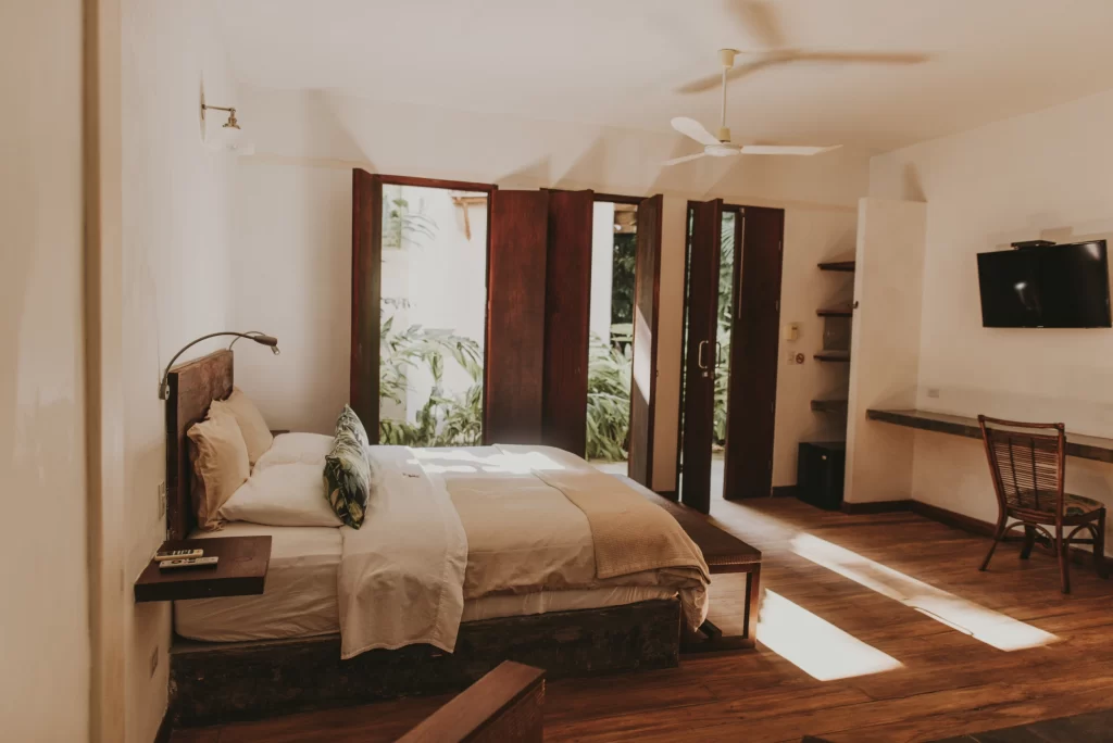 Escápese a un remanso donde el tiempo se detiene y el confort florece. Nuestras suites dobles con camas king le invitan a sumergirse en una atmósfera única, donde la elegancia moderna se entrelaza con el alma histórica de nuestra casa colonial. Despierte cada mañana en un espacio bañado por la luz natural que se filtra a través de amplios ventanales, prometiendo un nuevo día de encanto.